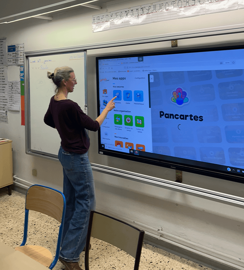 Le midi, rendez-vous dans la salle des maîtres pour la présentation des nouveautés de Beneylu School et un petit temps de formation des enseignants. L’équipe est super motivée, c’est très agréable.