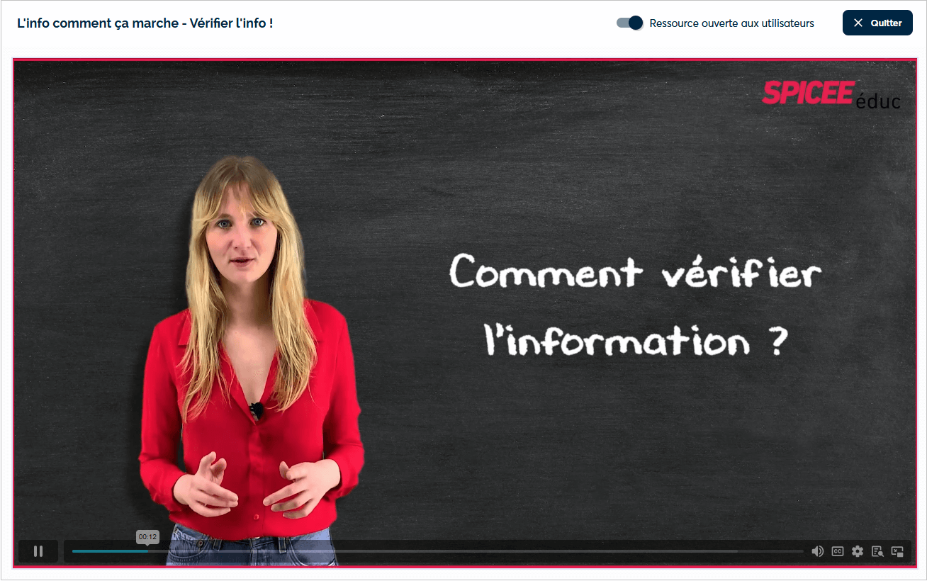 Dans cette vidéo courte, Spicee éduc analyse la source de l’information et explique aux élèves comment vérifier ce qu’ils lisent et partagent sur Internet. De quoi se poser les bonnes questions avant de publier.